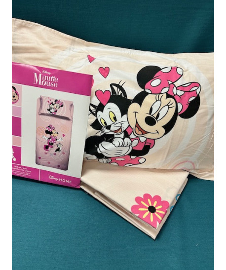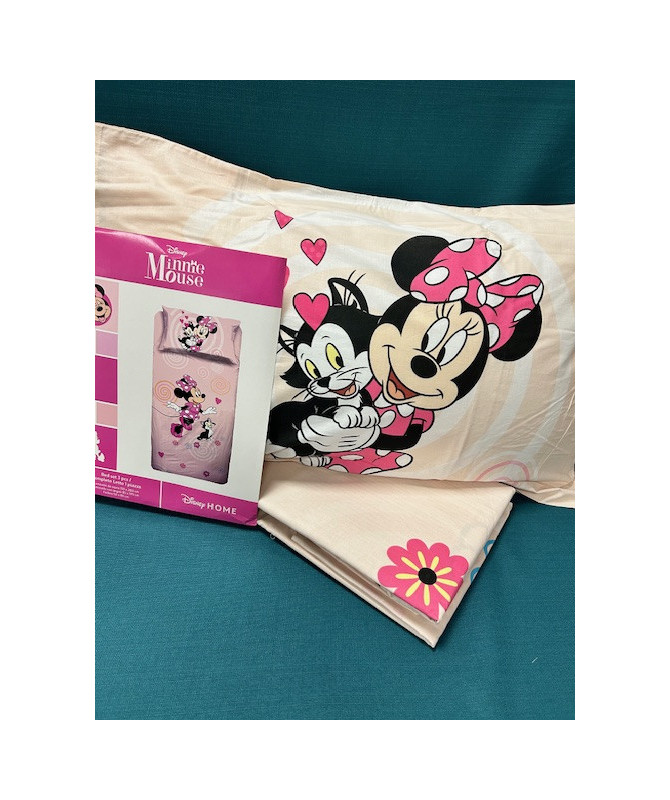 Completo lenzuola Disney Caleffi In puro cotone con una graziosa stampa di Minnie.