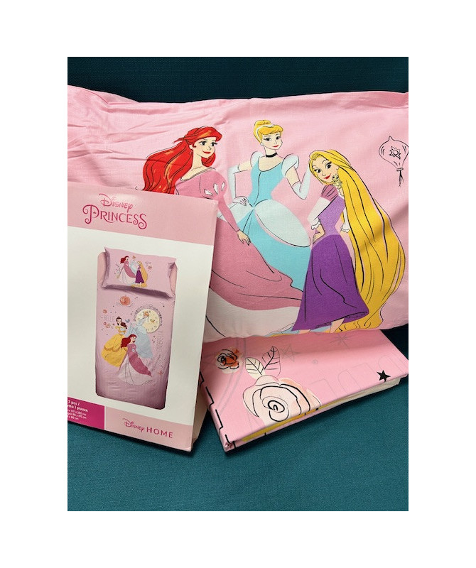 Completo lenzuola Disney Caleffi In puro cotone con una graziosa stampa delle principesse.
