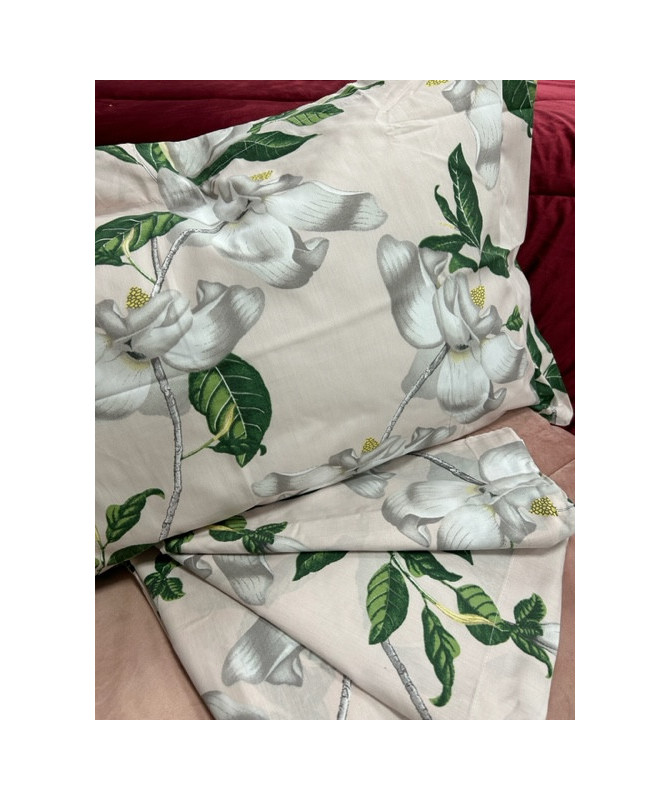 Lenzuola collezione Laura Home sweet Home in puro cotone percalle 70 fili stampa floreale su tutto il completo federe a quattro volant misura maxi e elastico sututto il perimetro del lenzuolo ad angolo disponibile solo matrimoniale lenzuolo sopr 260c290 lenzuolo con angolo 180x200+28 federe 50x80