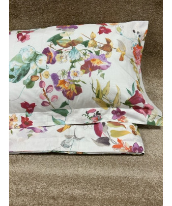 Lenzuola collezione Laura Home sweet Home in puro cotone percalle 70 fili stampa floreale su tutto il completo federe a quattro volant misura maxi e elastico sututto il perimetro del lenzuolo ad angolo disponibile solo matrimoniale lenzuolo sopr 260c290 lenzuolo con angolo 180x200+28 federe 50x80