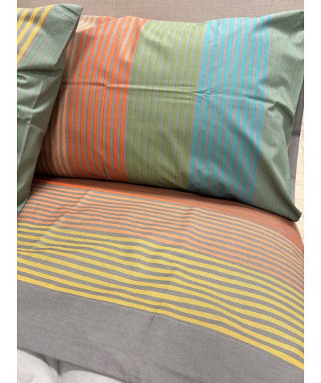 Stampato su tela di puro cotone da 58 fili al cmq, disponibile singolo lenzuolo sopra 160x280 lenzuolo sotto 90x200 +28 federa a sacco piazza e mezzo lenzuolo sopra 180x280 lenzuolo sotto 120x200 +28 federa a sacco matrimoniale lenzuolo sopra 250x280