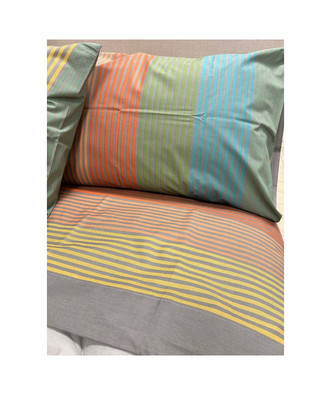 Stampato su tela di puro cotone da 58 fili al cmq, disponibile singolo lenzuolo sopra 160x280 lenzuolo sotto 90x200 +28 federa a sacco piazza e mezzo lenzuolo sopra 180x280 lenzuolo sotto 120x200 +28 federa a sacco matrimoniale lenzuolo sopra 250x280