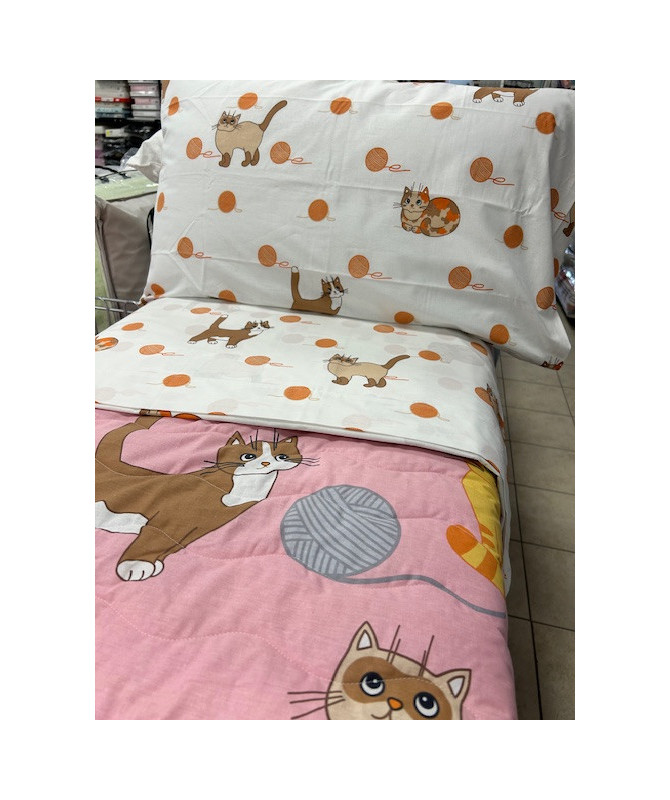 Completo lenzuola Gattini Caleffi In puro cotone Disponibile nelle misure Singolo lezuola sopra 155x280 lenzuolo sotto con angoli 90x200 federa doubleface 50x80 Piazza e mezzo lenzuolo sopra 180x280 lenzuolo sotto con angoli 120x200 federa doubleface 50x80