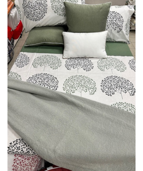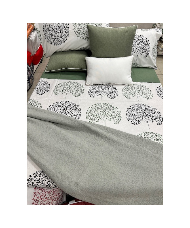 Completo lenzuola copriletto Rivira Il lenzuolo sopra con geometrica e ribaltina con la stessa stampa Lenzuolo sotto con un tenue scacco e la federa double face Disponibile nella misura Singolo sotto 90x200 + 28 sopra 150x280 fedara 50x80 Una piazza e mezzo sotto 130x200 + 28 sopra 180x280