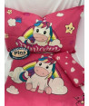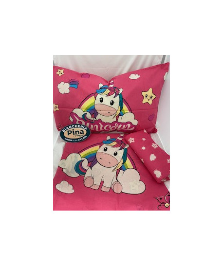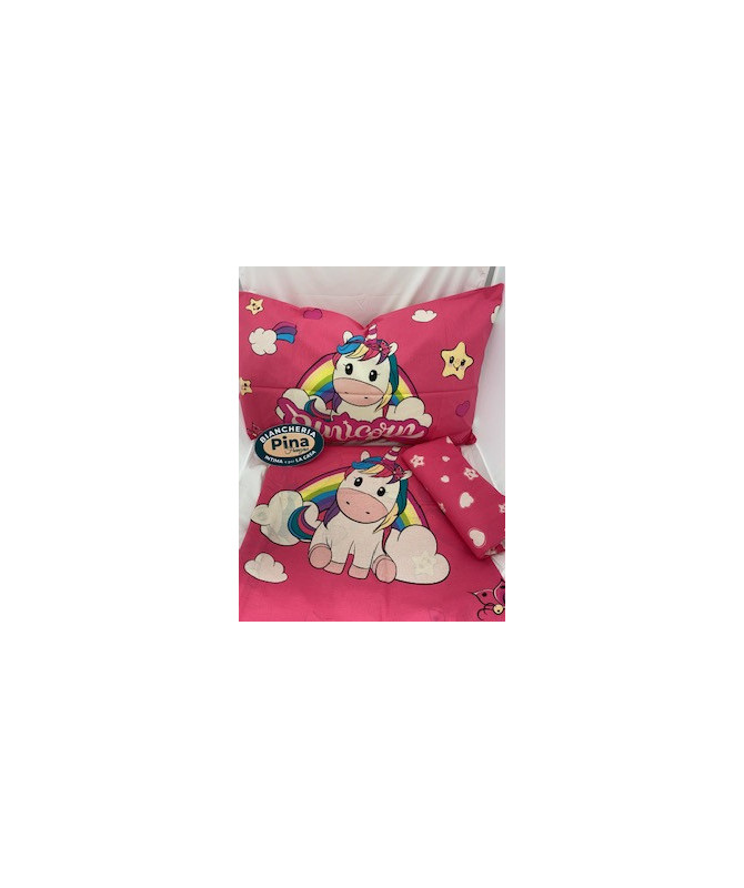 Completo lenzuola Unicorn Con una deliziosa stampa di unicorni su base rosa in puro cotone Dispinibile solo nella misura singola lenzuolo sopra 150x290 lenzuolo con angoli 90x200 una federa 50x80