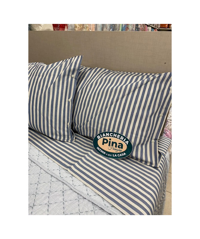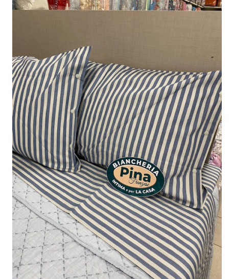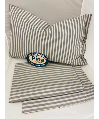 Completo lenzuola con delicata stampa a righe Prodotto interamente in Italia in cotone 100% disponibile nelle misure singolo sotto con angoli 90x200 +25 lenzuolo sopra 150x290 una federa a sacco 50x80 matrimoniale sotto con angoli 180x200 +25 lenzuolo sopra 240x290 2 federe a sacco 50x80 piazza e mezzo