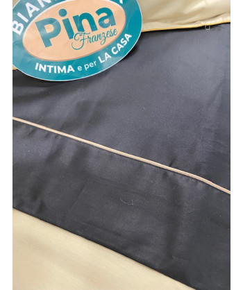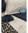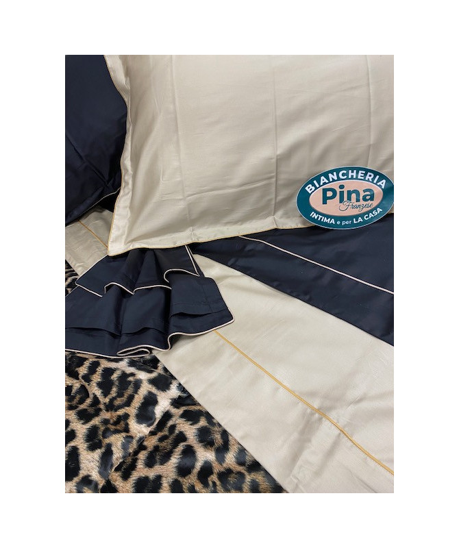 Completo lenzuola matrimoniale con stampa piazzata su raso di cotone, lenzuolo sotto in raso di cotone tinta unita.