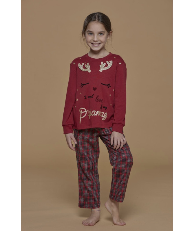 Pigiama donna in caldo cotone Noidnotte con applicazione canina dulla maglia e pantalone a scacchi polsino su manica e pantalone