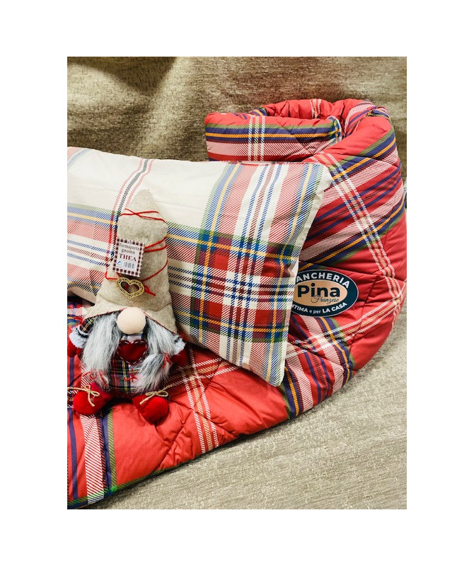 In puro cotone 100% con stampa scozzese base bianca o pi tradizionale in rosso. Dispinbile solo nella misura matrimoniale 260x260