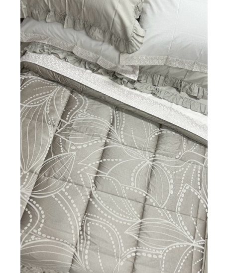 Trapunta matrimoniale in raso di cotone con stampa all over.