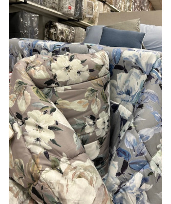 Trapunta stampata su tela di puro cotone da 58 fili al cmq con imbottitura in morbida fibra anallergica Disponibile per letto singolo cm 170x260, piazza e mezza cm 220x260 e matrimoniale cm 260x260 Coordinabile con il completo lenzuolo della stessa collezione.