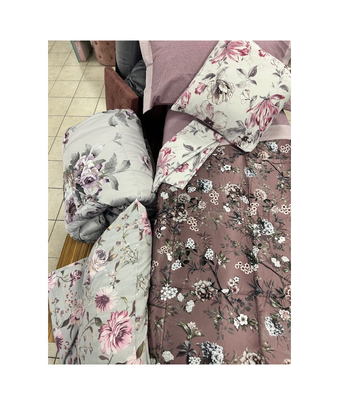 Morbida e avvolgente grazie all'innovativa tecnica di trapuntatura e al nuovo tessuto sweet-touch. Con elegante stampa floreale su tessuto di puro cotone. Imbottitura con fibra di polestere rigenerato 320gr/mq Misura matrimoniale 260x260 Prodotta interamente in Italia