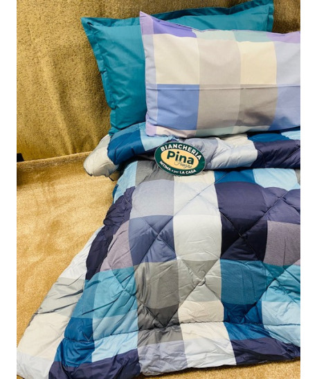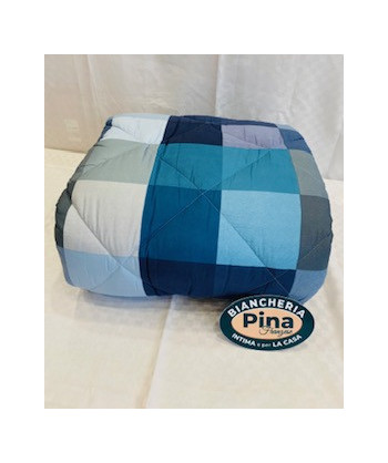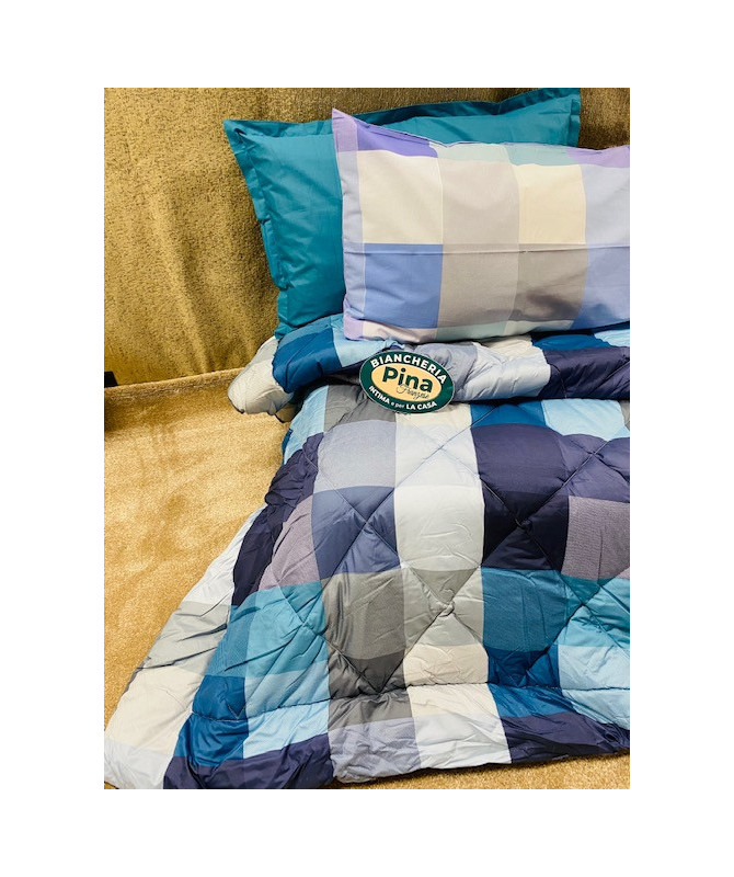 Trapuntatura piazzata a quadri con tre cornici e chiusura con angoli a trapezio. imbottitura in poliestere riciclato 330grmq matrimonliale 260x270