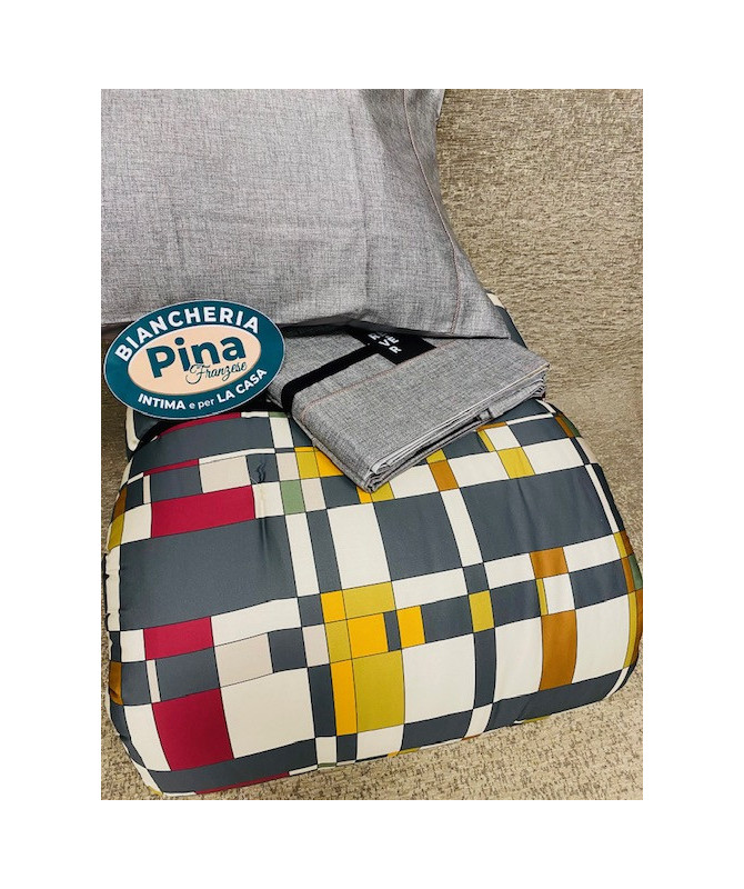Misure: 270x265 cm Tessuto sopra: 100% raso di cotone Tessuto sotto: 100% cotone Imbottitura: 100% fibra di poliestere 340 gr/mq Made in Italy