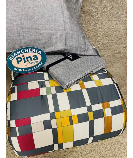Completo lenzuola Reveer in raso di puro cotone 300fili lenzuolo sopra con stampa digitale e applicazione a piping sotto con angoli tinta unita Disponibile matrimoniale lenzuolo sopra 265x290 lenzuolo sotto 180x200 + 28 due federe 50x80 con quattro volant