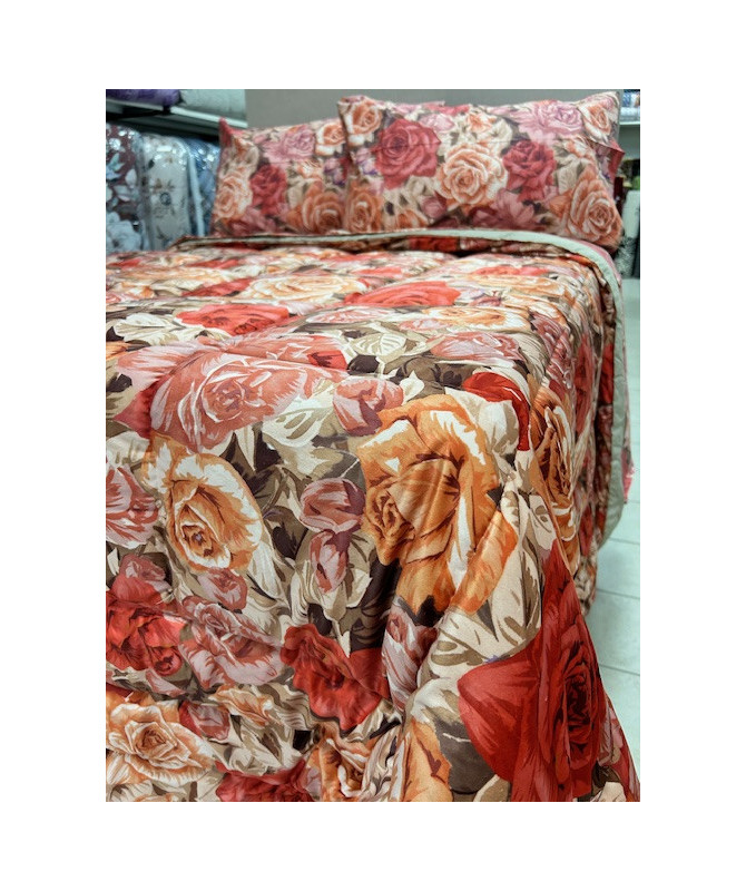 Trapunta stampata su tela di puro cotone da 58 fili al cmq con imbottitura in morbida fibra anallergica Disponibile per letto singolo cm 170x260, piazza e mezza cm 220x260 e matrimoniale cm 260x260 Coordinabile con il completo lenzuolo della stessa collezione.