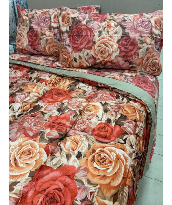 Trapunta in velluto Bernice Riviera delicata stampa foreale su velluto e retro in cotone madapolam imbottitura 330grmq in fibra anallergica di poliestere misura matrimoniale 260x270