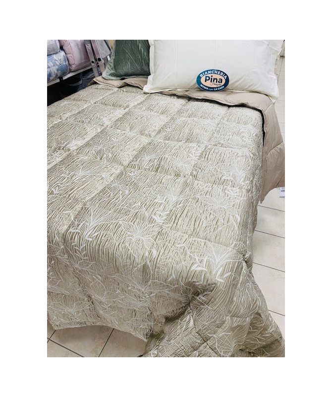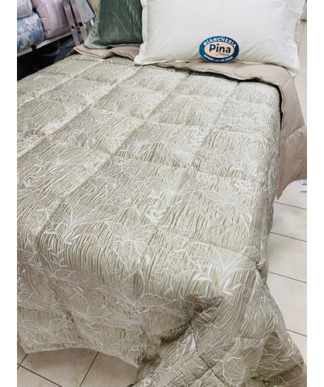 La trapunta ha un grado di calore superiore, quindi adatta all'inverno e gli ambienti poco riscaldati. IMBOTTITURA: 90% da piumino d'oca e al 10% da piumette RIVESTIMENTO ESTERNO: jacquard, un tessuto molto ricco con disegni complessi dotati di grande profondit e capace di regalare una sensazione unica al tatt lato inferiore tinta unita matrimoniale 270x270 Il piumino una delle parti pi pregiate del piumaggio, in grado di assicurare estrema leggerezza e comfort: ecco perch i prodotti imbottiti