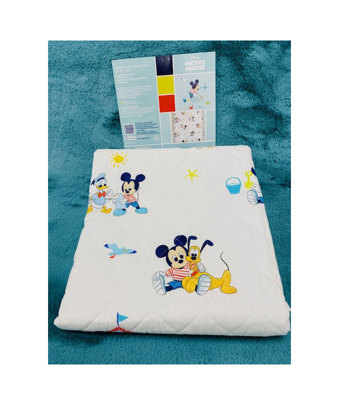 Trapuntino estivo per lettino con le barre baby Mikey e Minni di Caleffi imbottitura in polestere anallergico 100gmq estero in puro cotone misura 110x130