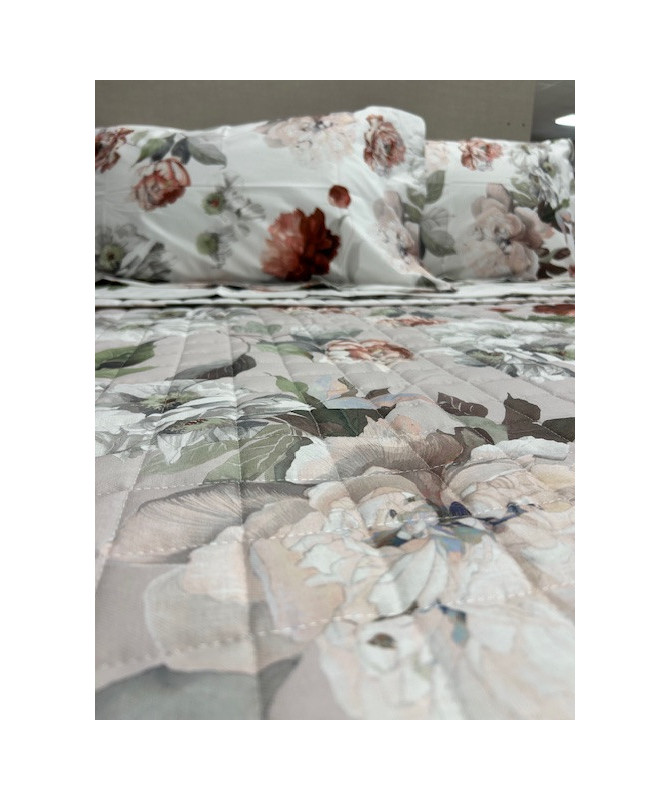 Copriletto trapuntato Vallesusa by Gabel Imbottitura in poliestere rigenerato 100mq tessuto esterno micorfibra Double-face floreale su un lato e tinta unita dall'altro Misura 260x265
