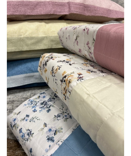 Trapuntino estivo doubleface Riviera In puro cotone su entrambi i lati imbottitura in fibra anallergica di poliestere 100gmq stampa floreale con colori tenui e tinta unota sull'altro lato disponibile solo matrimoniale 260x270