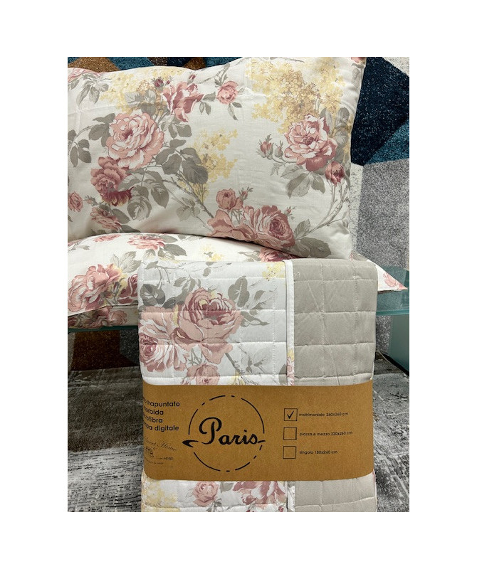 Copriletto trapuntato Home sweet home Double face tessuto esterno micirfibra imbottitura 100grmq in fibra anallergica di polestere.