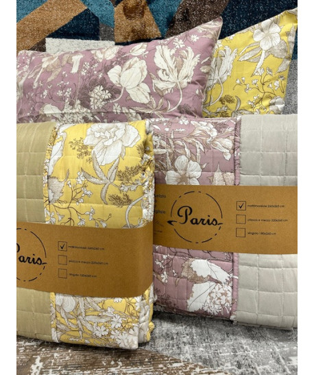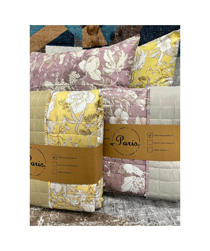 Copriletto Trapuntato Saint Jean Linea Oro In microfibra con coralli stampati e trapuntatura a quadretto disponibile nelle misure matrimoniale 260x260 piazza e mezzo 220x260 singolo 170x260