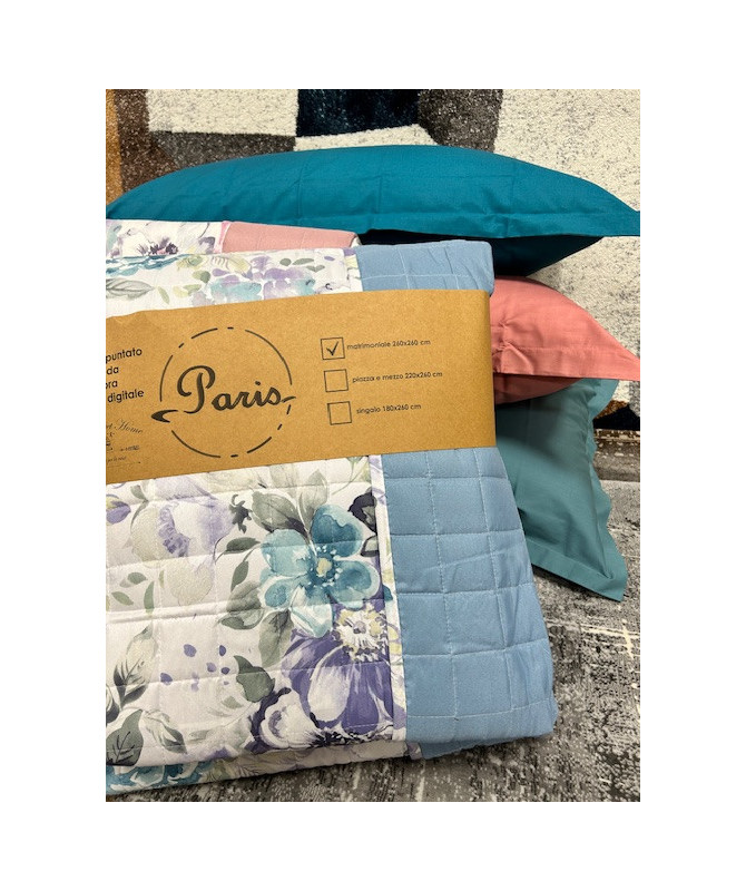 Copriletto trapuntato Vallesusa by Gabel Imbottitura in poliestere rigenerato 100mq tessuto esterno micorfibra Double-face floreale su un lato e tinta unita dall'altro Misura 260x265