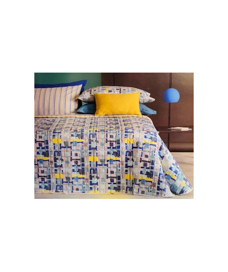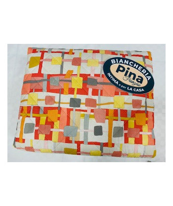 In puro cotone su entrambi sul lato superiore stampa geometrica e sul lato inferiore rigato con le stesse nuance di colore. Disponibile nelle misure matrimoniale 260x270 piazza e mezzo 220x270 singolo 180x270
