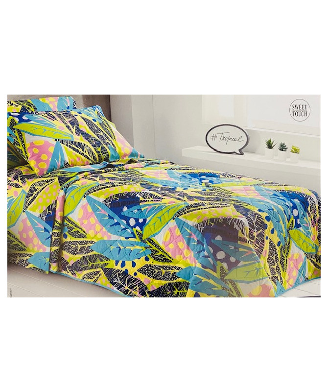Copriletto trapuntato Tropical collezione Teen Gabel In puro cotone sweet tuch con stampa digitale imbottitura in fibra anallergica di poliestere rigenerato 90grmq dispinibile singolo 170x260 piazza e mezzo 220x260