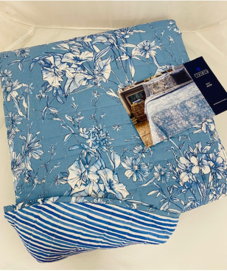 Trapuntino estivo doubleface Riviera In puro cotone su entrambi sul lato superiore stampa floreale sul lato inferiore a righe.