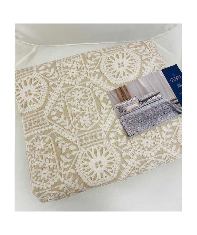 Copriletto trapuntato Cora Riviera Stone washed in tessuto 100% cotone imbottitura in polestere 120gmq Trapuntatura in mini segmenti ad effetto capitonne con doppia rouches sfrangiata matrimoniale 260x260