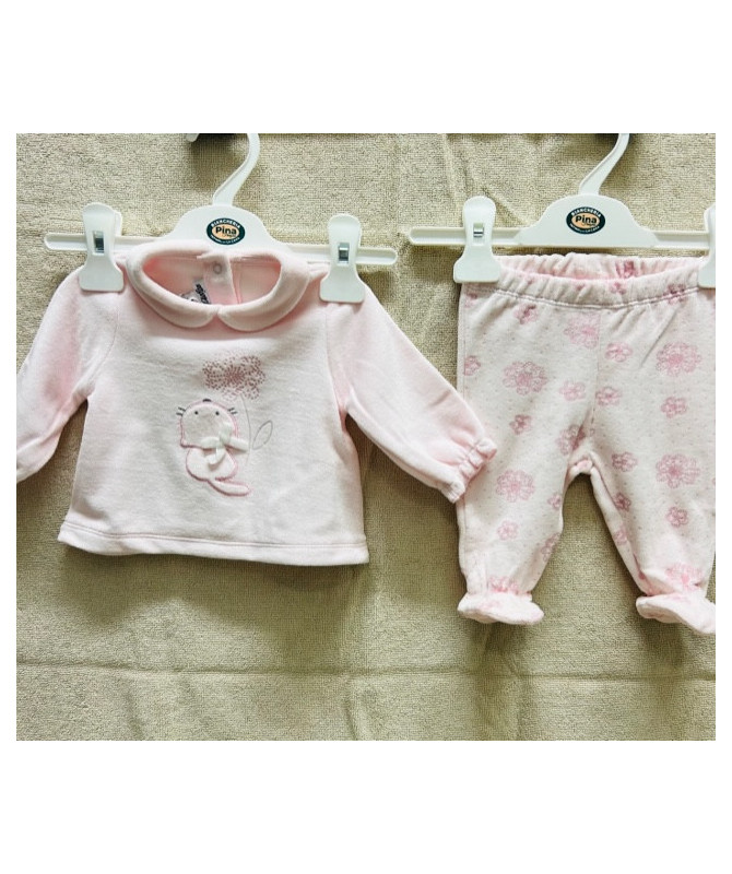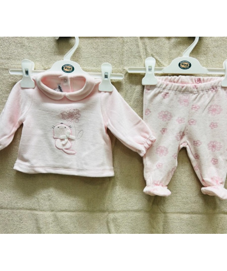 Completo due pezzi Mignolo in morbida ciniglia maglia con apertura sulla schiena con automatici pantaloncino con piedino