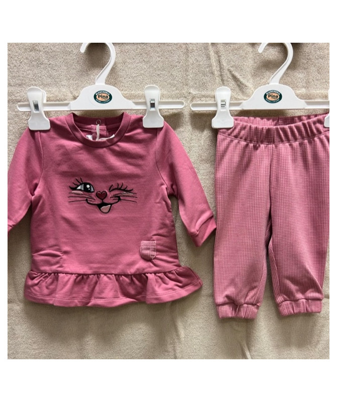 Tuta felpata Migolo malgia con automatici sulla nuca e rouches pantalone con polsino