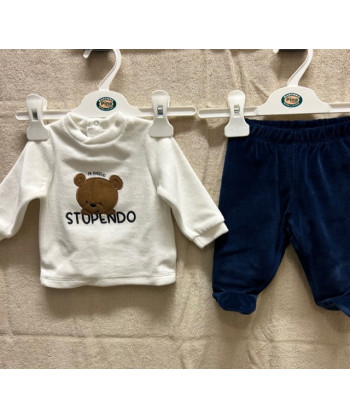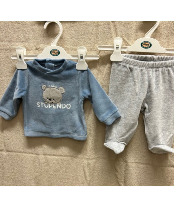 Completo due pezzi Mignolo in morbida ciniglia maglia con apertura sulla schiena con automatici pantaloncino con piedino