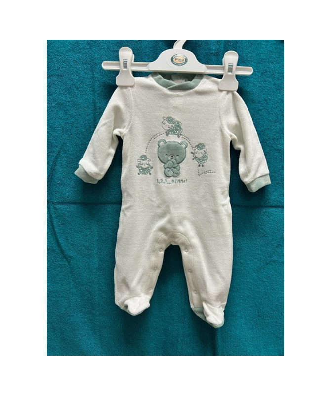 Completo due pezzi Mignolo in morbida ciniglia maglia con apertura sulla schiena con automatici pantaloncino con piedino