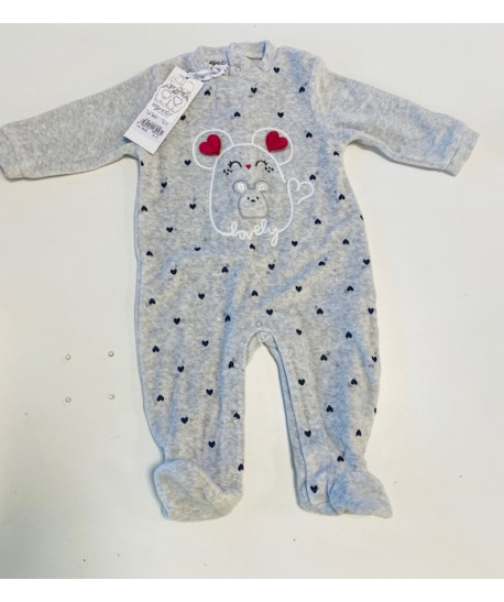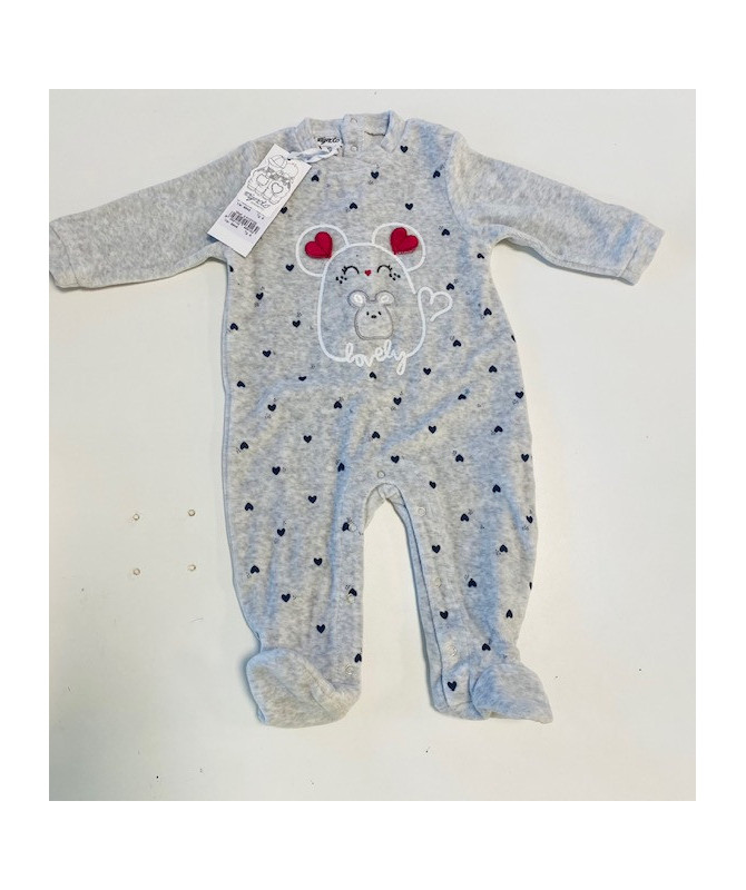 Completo due pezzi Mignolo in morbida ciniglia maglia con apertura sulla schiena con automatici pantaloncino con piedino