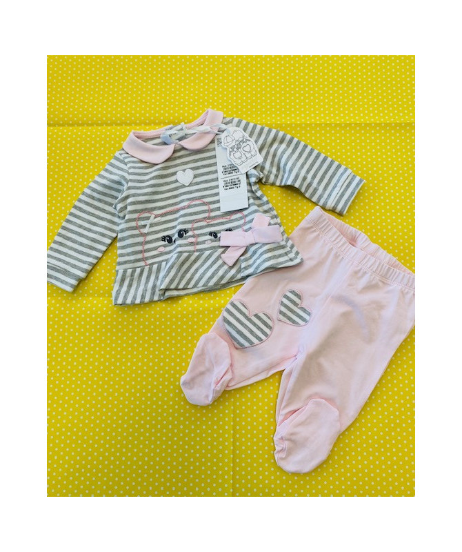 Completo neonato Mignolo in cotone pantalone con piedino e maglietta con automatici dietro