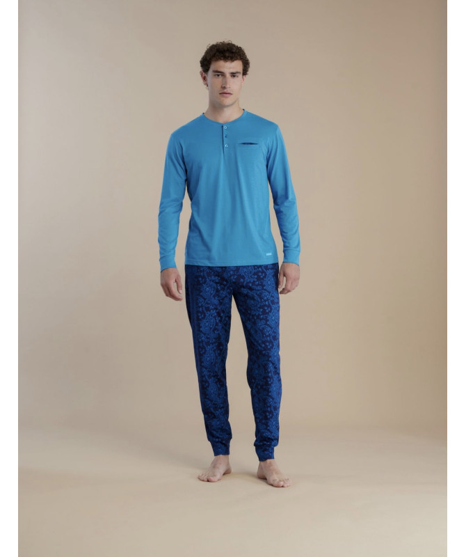 Pigiama uomo 100% cotone Noidinotte classico con giacca abbottonata sul davanti e colletto