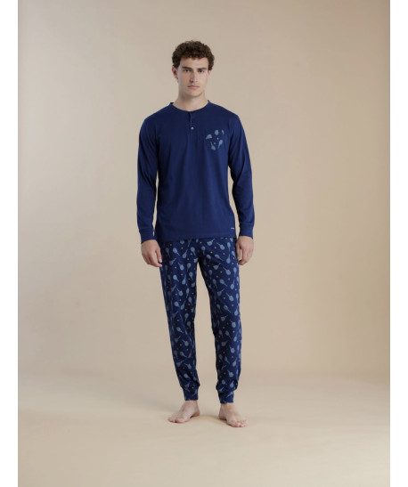 Pigiama uomo Noidnotte in cotone manica lunga con polsino su manica e pantalone coordinabile con pigiama da bambino