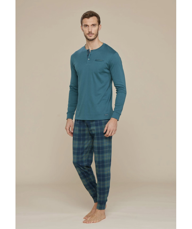 Pigiama uomo Noidnotte Taglio a giacca con bottoni Fantasia tartan in flanella di cotone Coordinabile con tutta la famiglia.